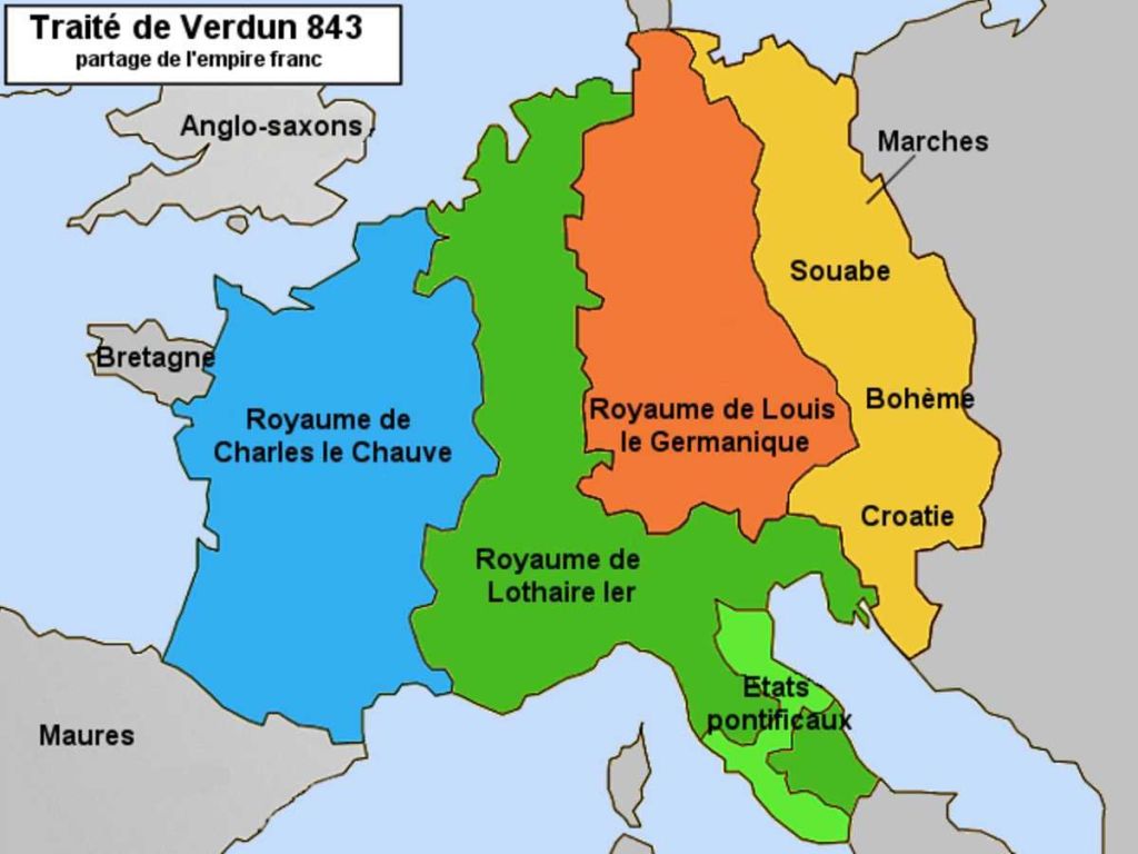 Louis le Pieux, dernier fils survivant de Charlemagne, régna de 814 à 840, en tant qu’empereur. Mais il fut couronné roi d’Aquitaine en 781, c’est à dire à l’âge de 3 ans, jusqu’au décès de son père. En dépit d’une postérité qui va l’affubler du surnom de débonnaire depuis le XIIe siècle, il n’a pas démérité des qualités guerrières que chaque Franc attend de son chef comme il est de coutume. Il est armé par son père en 791 à l’âge de 14 ans, mène le siège de Huesca en Espagne musulmane en 797, à vingt ans, prend la tête de l’armée en 800 et conquiert Barcelone, échoue devant Tortosa en 809, mais atteint l’Ebre en 811. Une fois empereur, il mène une expédition . victorieuse contre les Bretons de Morvan en 817. Il a pu aussi faire preuve d’une certaine cruauté dans la gestion de sa succession en éliminant son neveu Bernard, fils de son frère Pépin qui s’était rebellé contre l’Ordinatio Generali de 817, le capitulaire qui organisait la division de son empire à sa succession entre ses trois premiers fils, Lothaire, Pépin et Louis. Ce capitulaire (une loi organisée en chapitres) est important car il fait émerger la notion d’unicité de l’empire, indivisible par nature. Il associe son fils ainé, Lothaire, comme empereur en même temps que la promulgation du capitulaire, l’empire étant la formulation politique idéale de l’Eglise, associant l’Empereur sacré à Rome au roi David qui règne sur la nouvelle Jérusalem. Mais aussi il perpétue la coutume germaine franque de la division du royaume entre ses fils. Lothaire 23 ans, coempereur, reçoit l’Italie, Pépin l’Aquitaine, et Louis la Bavière. Ainsi ce capitulaire crée une tension dans l’empire entre le principe d’unité, que des prélats comme Agobard, promeuvent au nom de l’unicité chrétienne, l’empire étant l’incarnation politique de l’Eglise universelle et la vieille coutume franque de la division du royaume si commode au grands aristocrates pour faire valoir leur pouvoir local. Le principe de l’unité du royaume se concrétise par exemple par la réforme de la règle bénédictine de Benoit d’Aniane qui oblige la plupart des monastères de l’empire à l’adopter, et une uniformisation des règles du commerce notamment en fixant les taux de prélèvements du tonlieu prélevé dans les deux ports principaux carolingiens, Quentovic et Dorestad, avec le capitulaire de Nimègue en 825. Le principe de la division du royaume résiste à cette aspiration unitaire par les propres contradictions de l’empereur Lothaire lui-même, et ce fut sa grande faiblesse que l’historiographie a mise en avant pour évoquer son règne. En effet, par suite du décès de sa première épouse en 817, il se remarie avec Judith, réputée belle, et de cette union nait un fils en 823, Charles. Aussitôt Judith revendique pour lui une part de l’héritage, et qui aboutit à un nouveau partage de l’empire en 829 à Worms au profit de Charles. S’en suit la révolte des premiers fils de Louis, Lothaire en tête, avec l’appui de certains prélats comme Agobard, archevêque de Lyon, qui accuse Louis 1er de parjure et de rompre l’unité sacrée de l’Empire. Il soutien Lothaire, sensé incarné cette unité de l’Empire. Une guerre civile s’ensuit avec des rebondissements multiples, dont la déposition de Louis 1er pendant deux ans en 835-837, puis au partage définitif de l’empire en 843 au traité de Verdun, entre les trois fils survivants, Lothaire qui garde la couronne impériale, Louis le Germanique et Charles le Chauve, après la mort de Lothaire en 840. C’est la fin définitive de l’unité européenne incarnée par trois siècles de domination franque mérovingienne et carolingienne ( 511-843).